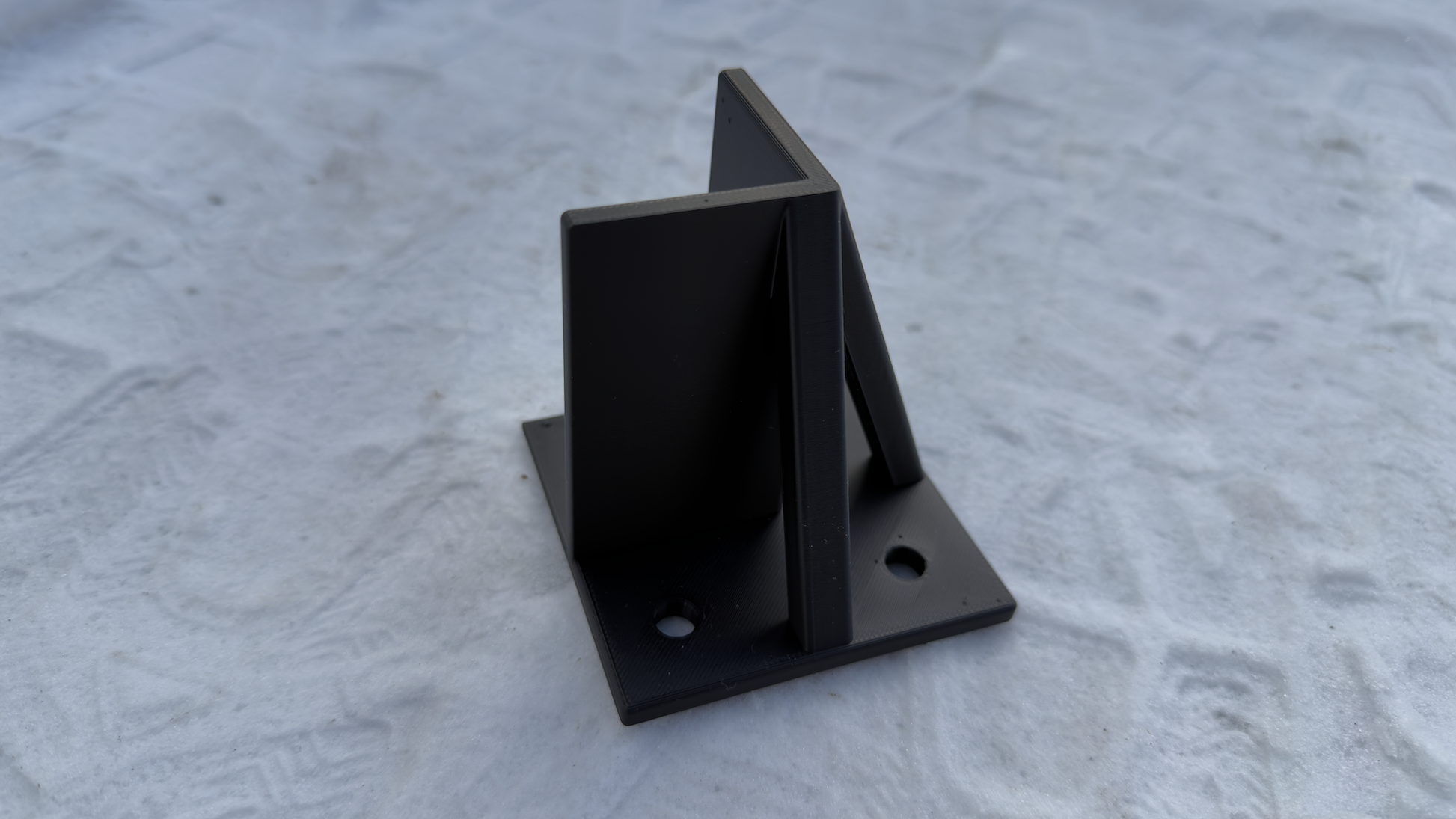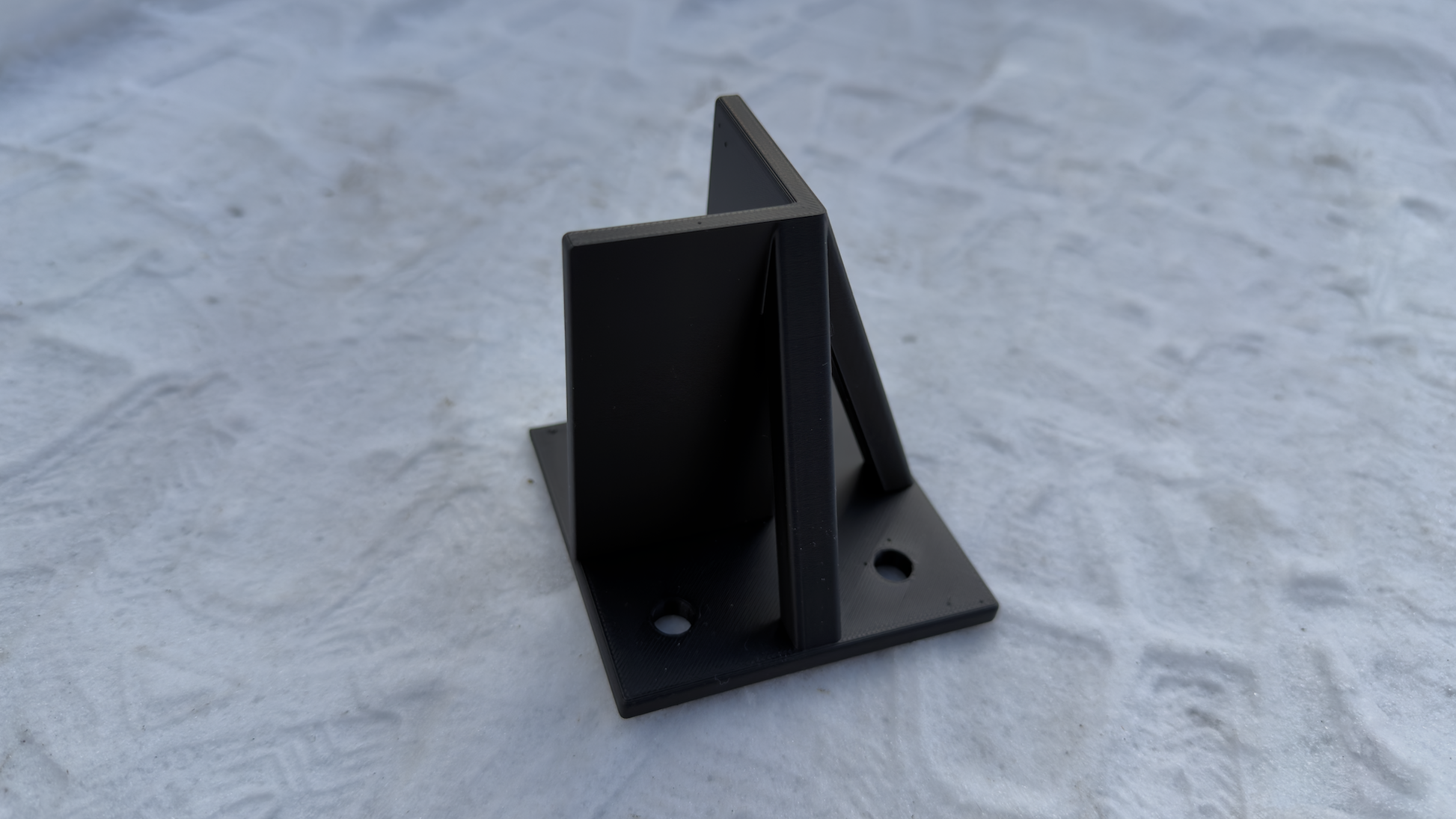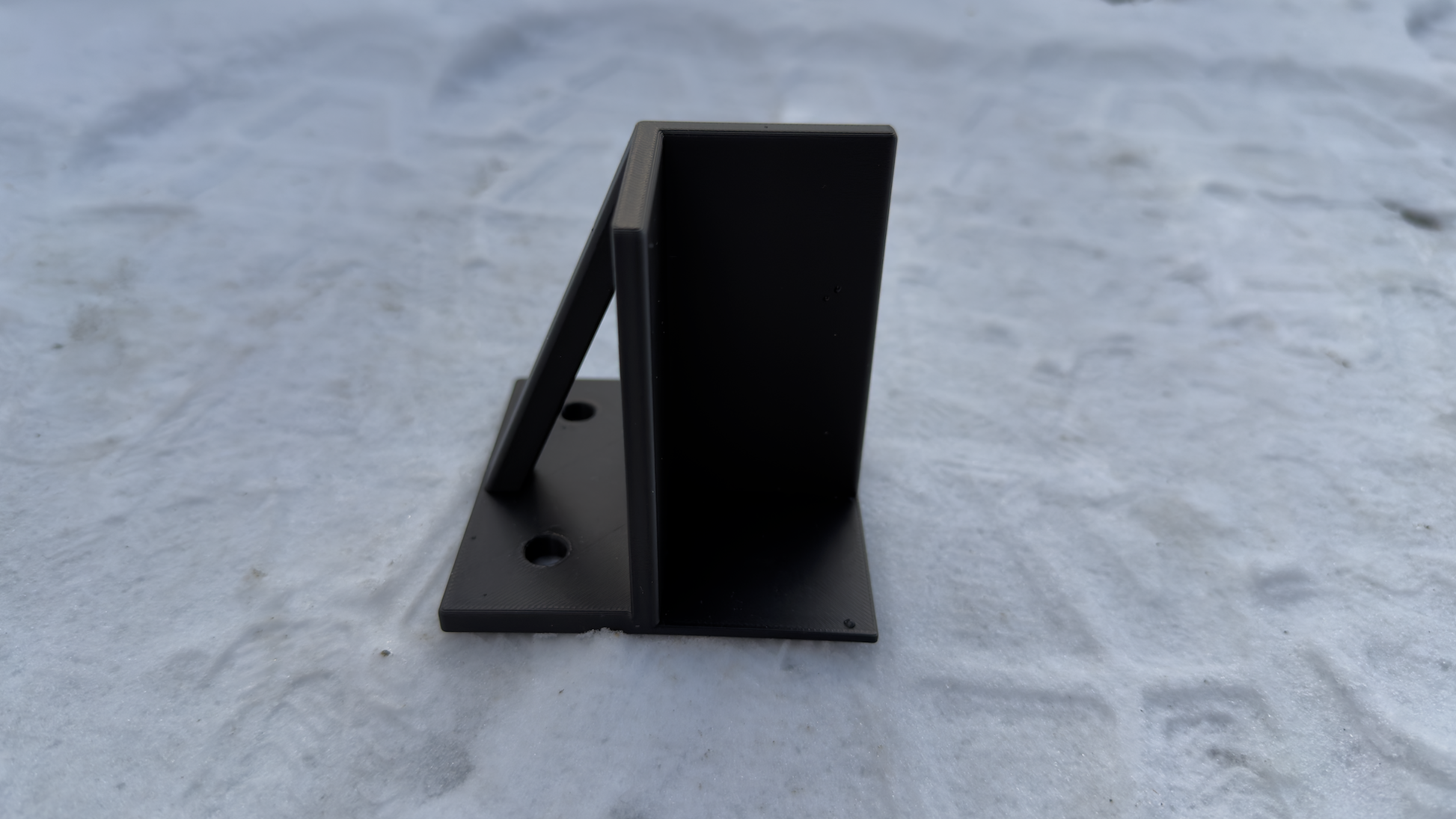 Støtten plasseres tett inntil batteriet for å gi ekstra stabilitet under oppskyting. Den er 3D-printet i slitesterk PETG og tåler bruk utendørs.